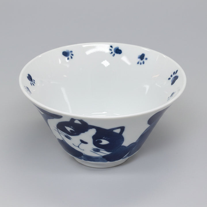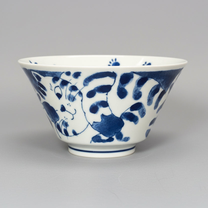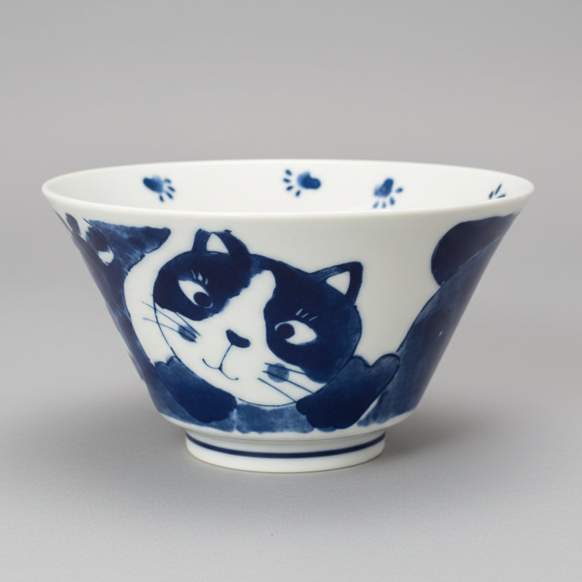 Asahido Large Cat Ukiyoe Bowl - Blue Line